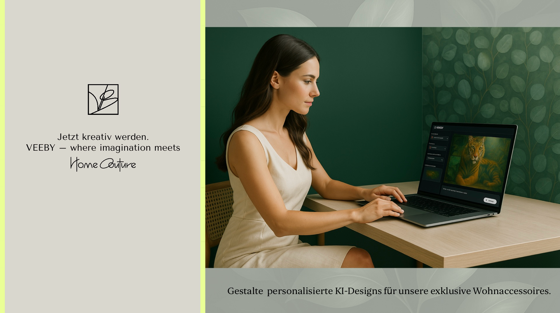 VEEBY Home Couture verbindet moderne KI-Technologie mit exklusivem Home Decor und eröffnet Kunden die Möglichkeit, Wohnaccessoires nach ihren individuellen Vorstellungen selbst zu gestalten. VEEBY Home Couture richtet sich an qualitätsbewusste und designaffine Kunden, die Wert auf Ästhetik, Exklusivität und Innovation legen. Die Zielgruppe umfasst nicht nur Menschen, die ihr eigenes Zuhause gestalten möchten, sondern auch Schenkende, die ein einzigartiges, persönlich gestaltbares Geschenk für besondere Anlässe suchen. Über einen Online-Generator können Kunden persönliche Designs erzeugen, die anschließend auf hochwertige Produkte wie Decken, Kissen oder Tapeten übertragen werden. VEEBY Home Couture macht kreative Freiheit einfach zugänglich, ohne dass gestalterische Vorkenntnisse erforderlich sind. Der besondere Nutzen liegt in der Kombination von Individualität, Premium-Qualität und digitaler Einfachheit. Kunden erhalten ein echtes Unikat, das ihre Persönlichkeit widerspiegelt, anstatt auf vorgefertigte Muster oder Standarddesigns zurückgreifen zu müssen. Darüber hinaus sorgt die On-Demand-Produktion innerhalb Europas für nachhaltige Herstellungsprozesse, kurze Lieferwege und reduzierte Lagerhaltung. Durch den Einsatz der KI-Technologie wird der kreative Prozess demokratisiert: Jeder kann seine eigene Vision, schnell, intuitiv und komfortabel, verwirklichen. Damit schafft VEEBY Home Couture ein Angebot, das es in dieser Form bisher auf dem Markt nicht gibt und bietet eine neue Erlebnisdimension im Bereich der Wohnraumgestaltung.