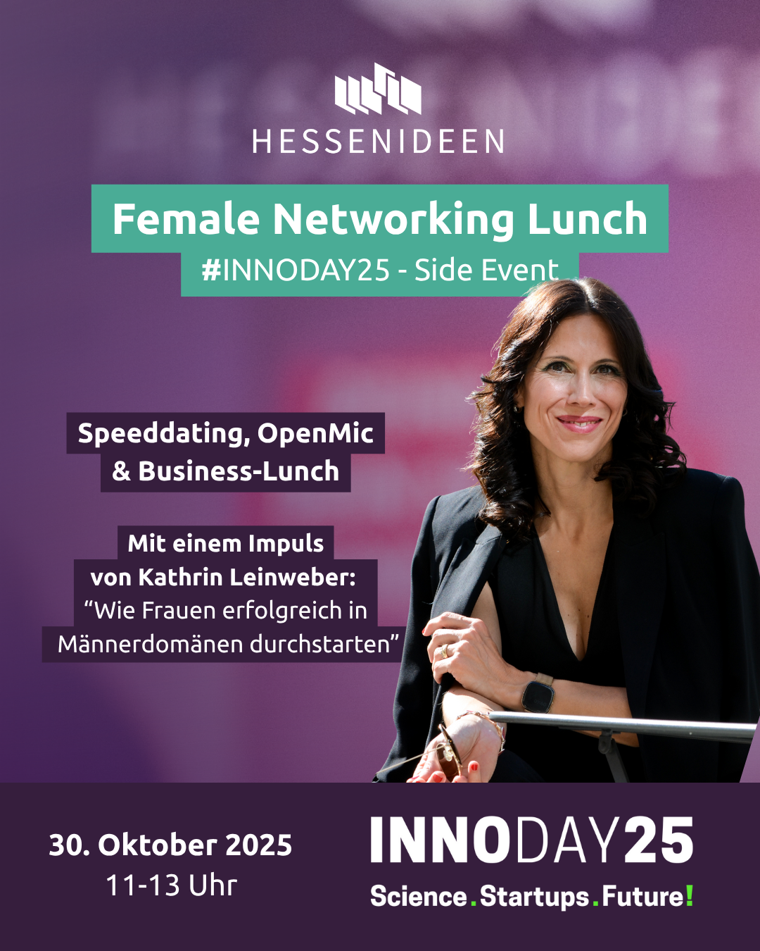 Wir bieten Gründerinnen, Gründungsberaterinnen und Female Supporterinnen aus dem Ökosystem einen Safe Space für Vernetzung, Austausch, Inspiration und gegenseitige Unterstützung - und das direkt beim diesjährigen #INNODAY25 in Darmstadt!